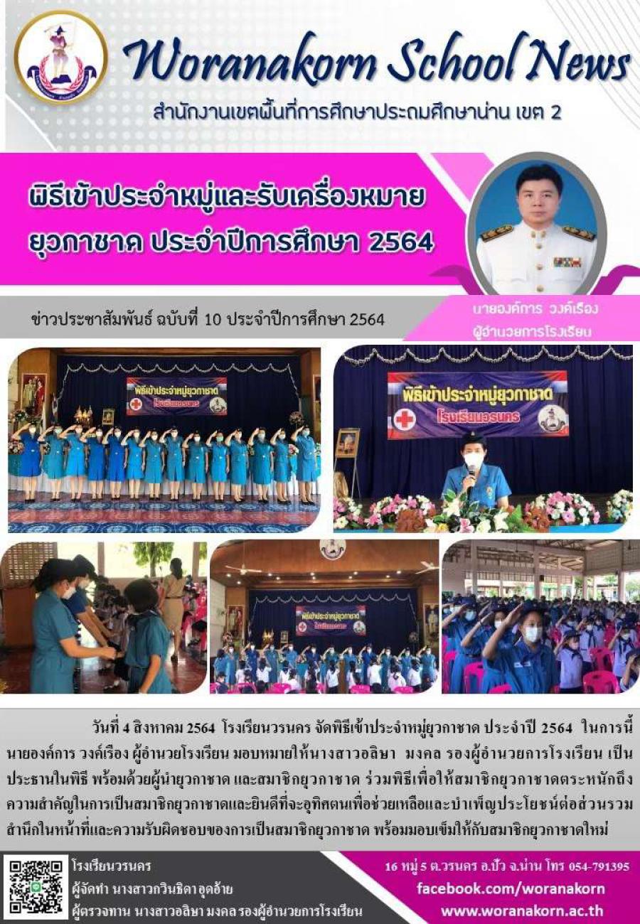 พิธีเข้าร่วมประจำหมู่และรับเครื่องหมายยุวกาชาด ประจำปีการศึกษา 2564