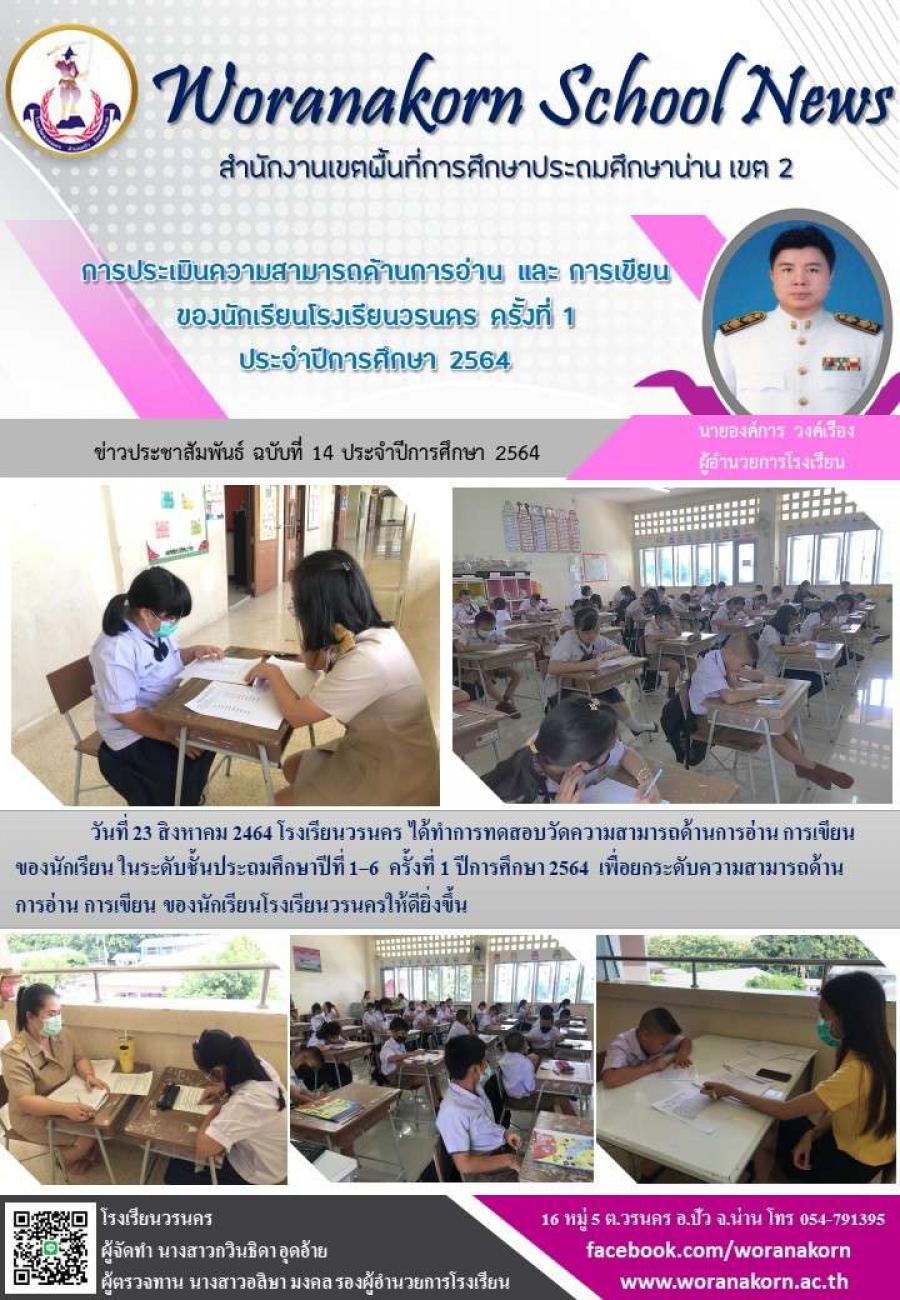 การประเมินความสามารถด้านการอ่าน และการเขียน ครั้งที่ 1 ปีการศึกษา 2564