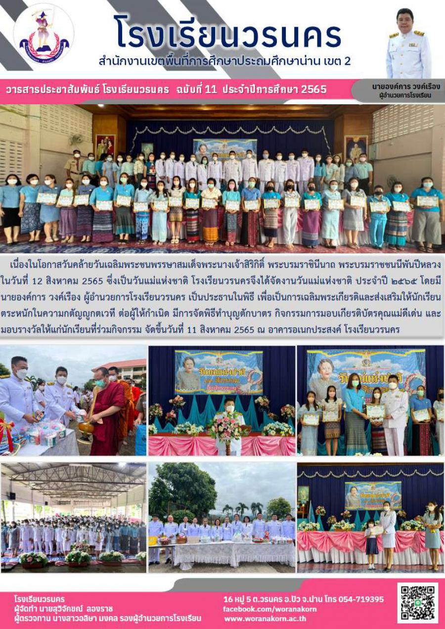 โรงเรียนวรนครจัดกิจกรรมวันแม่แห่งชาติ ประจำปี 2565